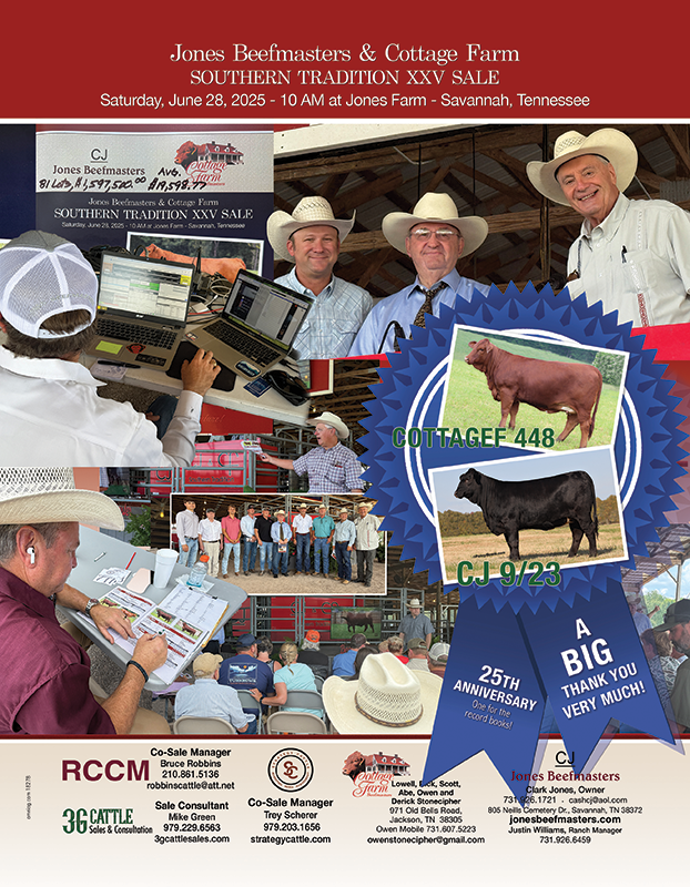 Jones Beefmasters is a seedstock Beefmaster breeder from West Tennessee specializing in raising top quality Beefmaster cattle. We have a passion and love for Beefmasters unmatched in our industry. We share the competitive spirit and determination required to breed and produce superior seedstock cattle that perform in every aspect of the purebred and commercial industry. Since the mid-1980s our motto has been “Quality is a Powerful Thing” and we strive each day to produce problem-free cattle that have the ability to perform in real-world conditions.